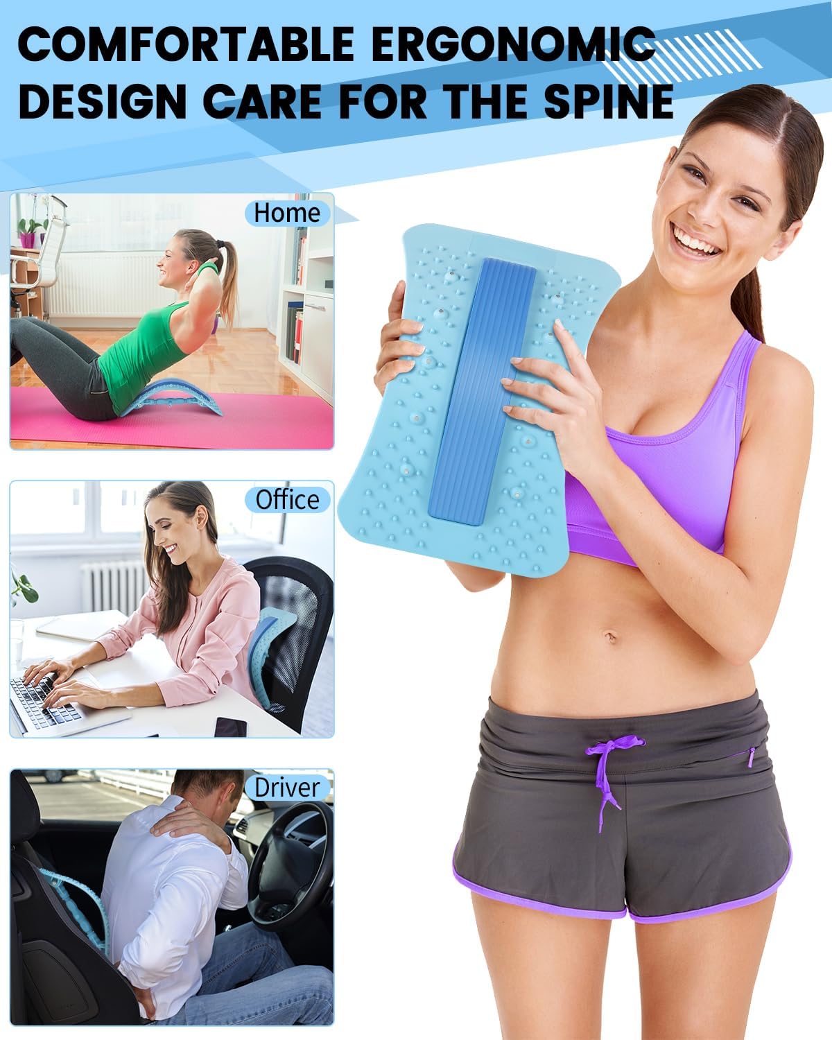 💗 Back stretch & pain felief - The back stretcher is designed based on ergonomics and is specifically designed for back support, stretching, and pain relief. It provides stretching/massage effects that help improve blood circulation and effectively alleviate low back pain. And it has a significant improvement effect on intervertebral disc herniation, sciatica, scoliosis, and posture correction.