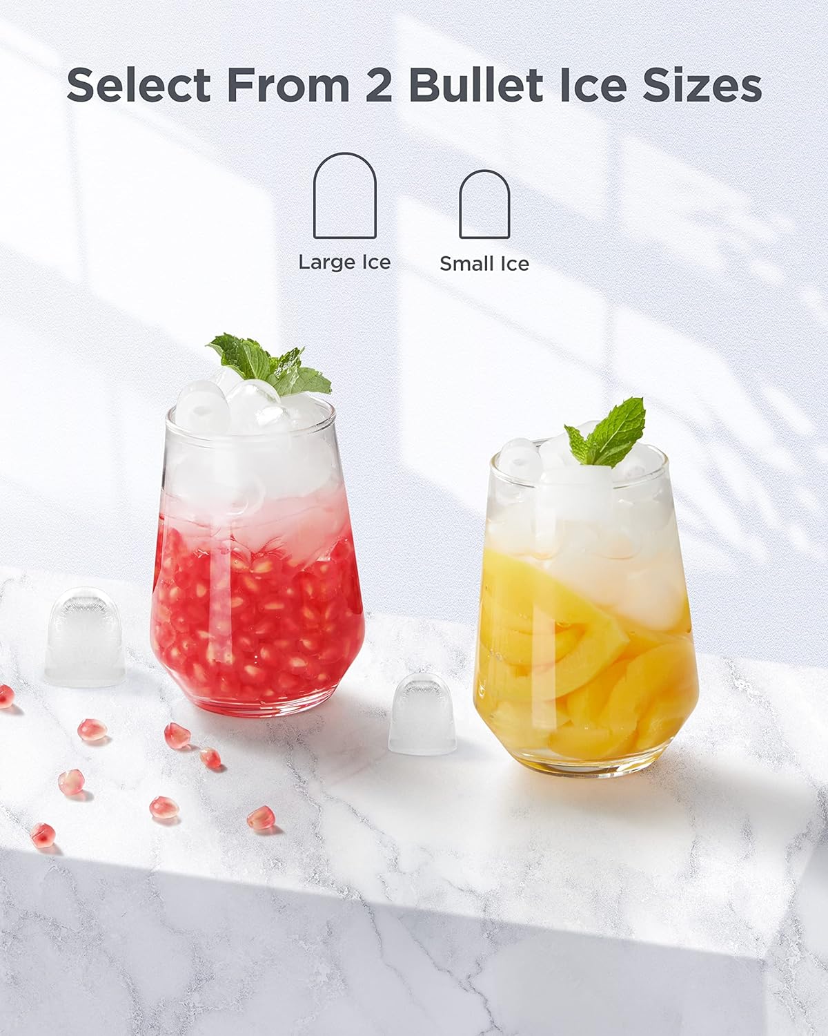Customizable Options: Choose between two ice cube sizes to suit your specific preferences or needs, whether it's for rapidly chilling beverages or enhancing the presentation of cocktails, providing tailored ice solutions for any occasion.