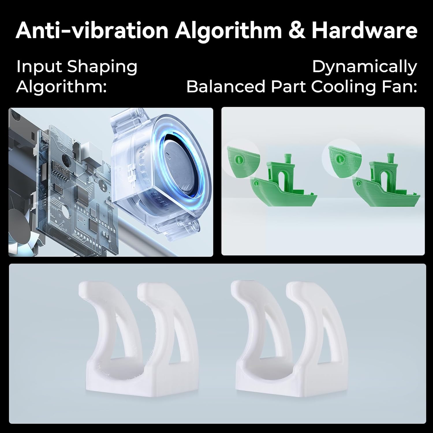 A dynamically balanced cooling fan minimizes vibrations, while input shaping algorithms eliminate ringing and surface flaws. The result? Cleaner, crisper prints every time.