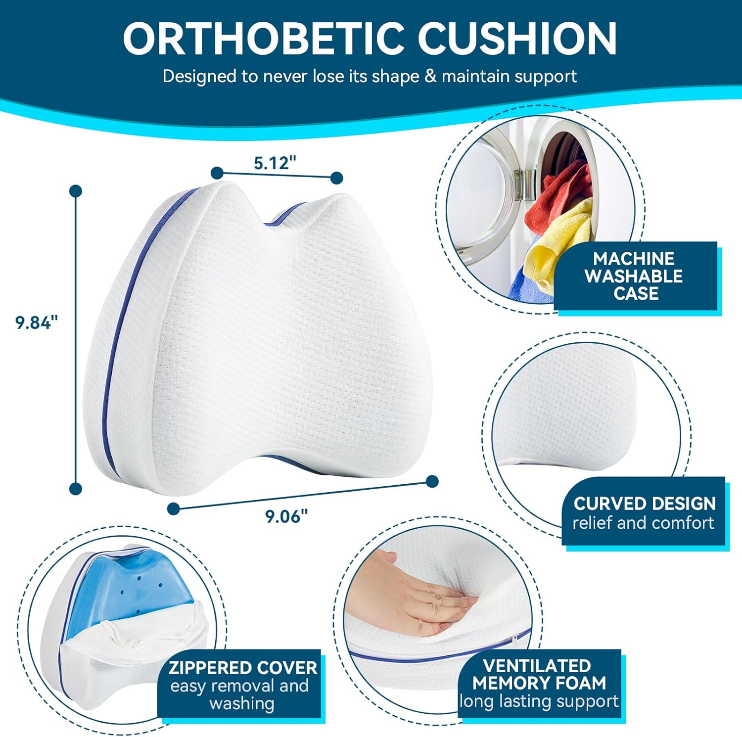 【WASHABLE PILLOWCASE】: Our knee pillow for side sleepers has a white pillowcase made of velvet woven cloth, which is friendly to your skin. The orthopedic knee pillow has a hidden zipper that allows you to remove and clean the pillowcase. Note: Memory foam knee pillow cannot be cleaned.