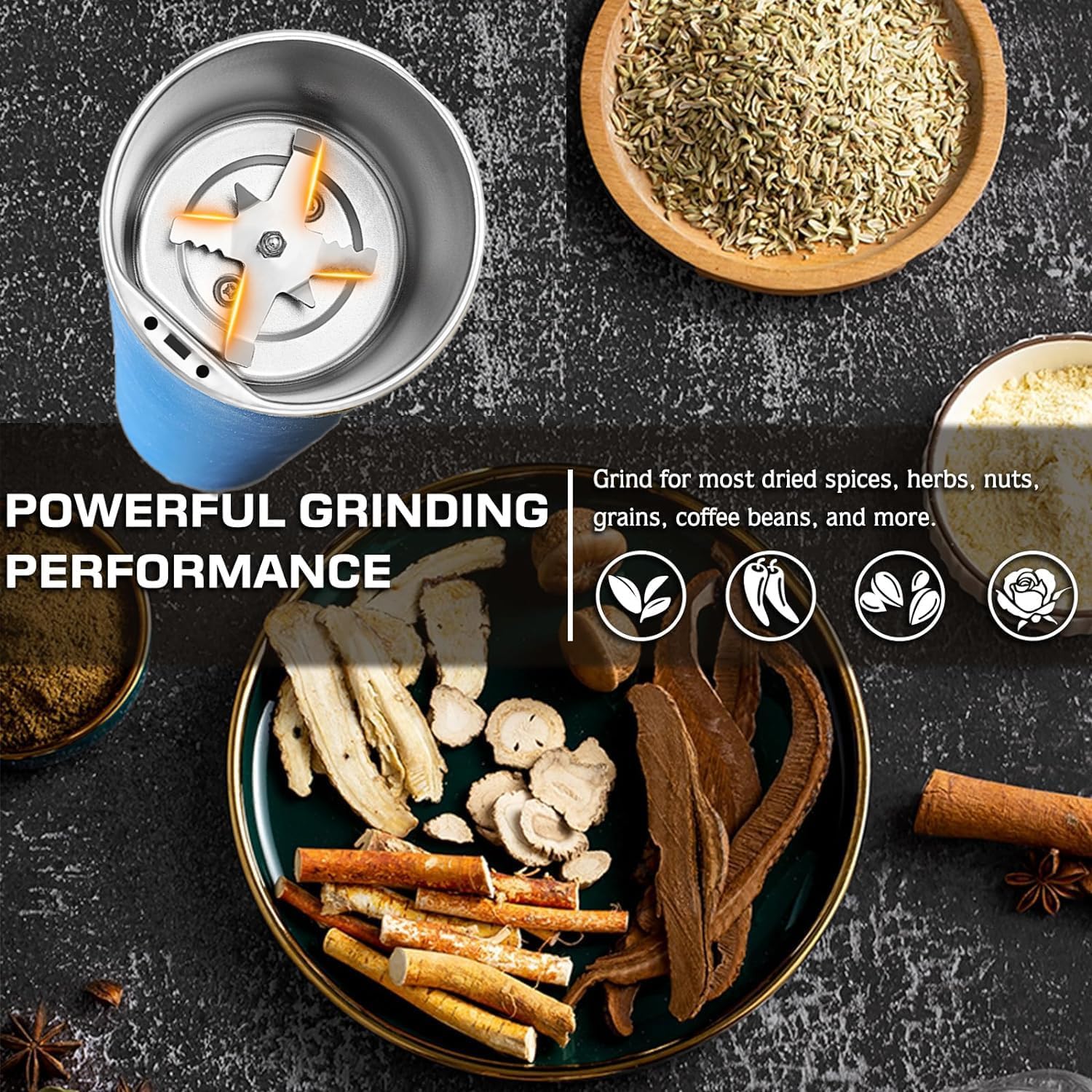 ⚙️ Versatile Grinding: Grind coffee, nuts, and spices effortlessly.