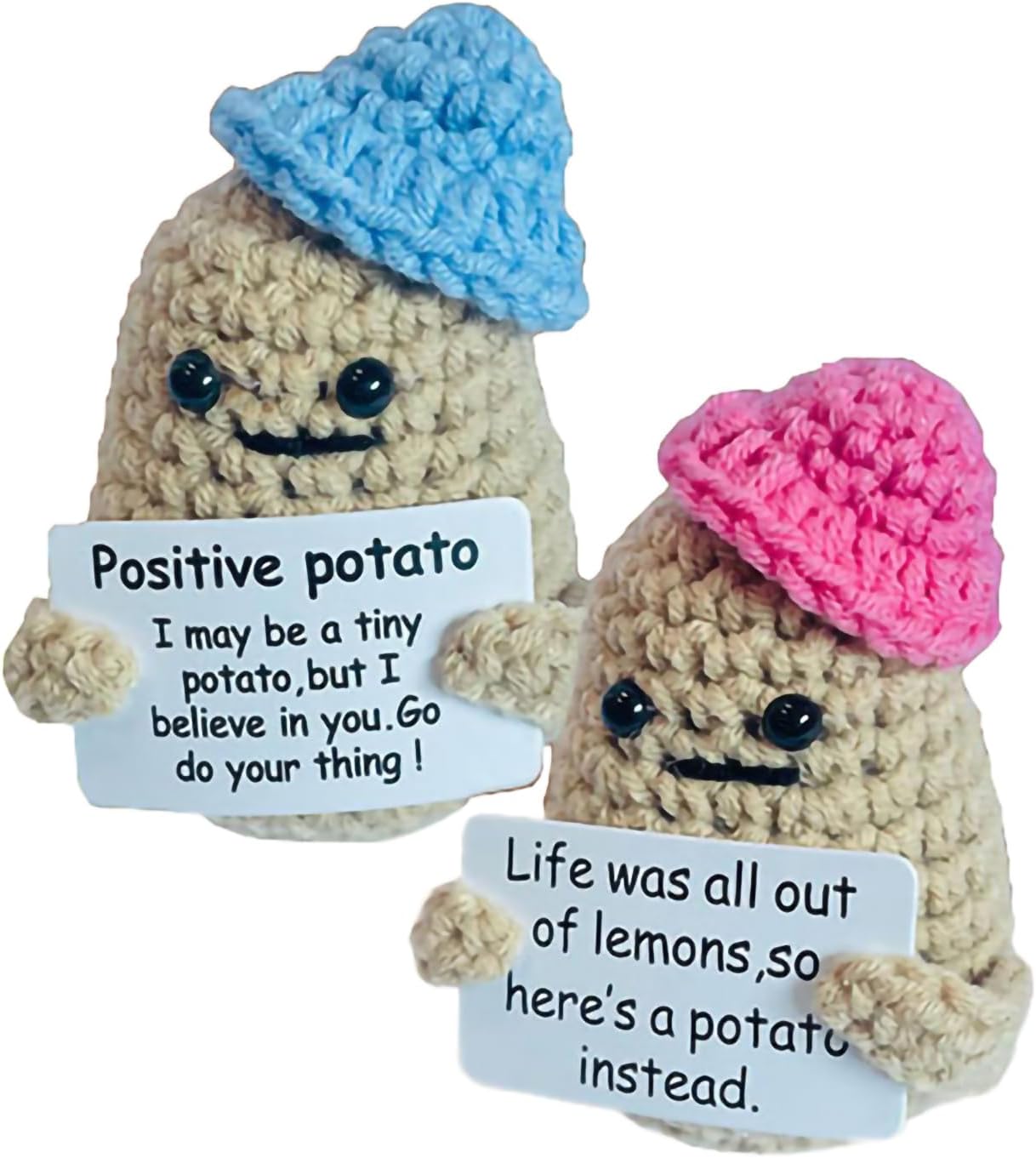 - 【Funny Positive Potato】You will receive 2 Knitted Positive Potato with encouraging message card that will put a smile on the person you care about. It's so cute and surprising to your friends, family and children.