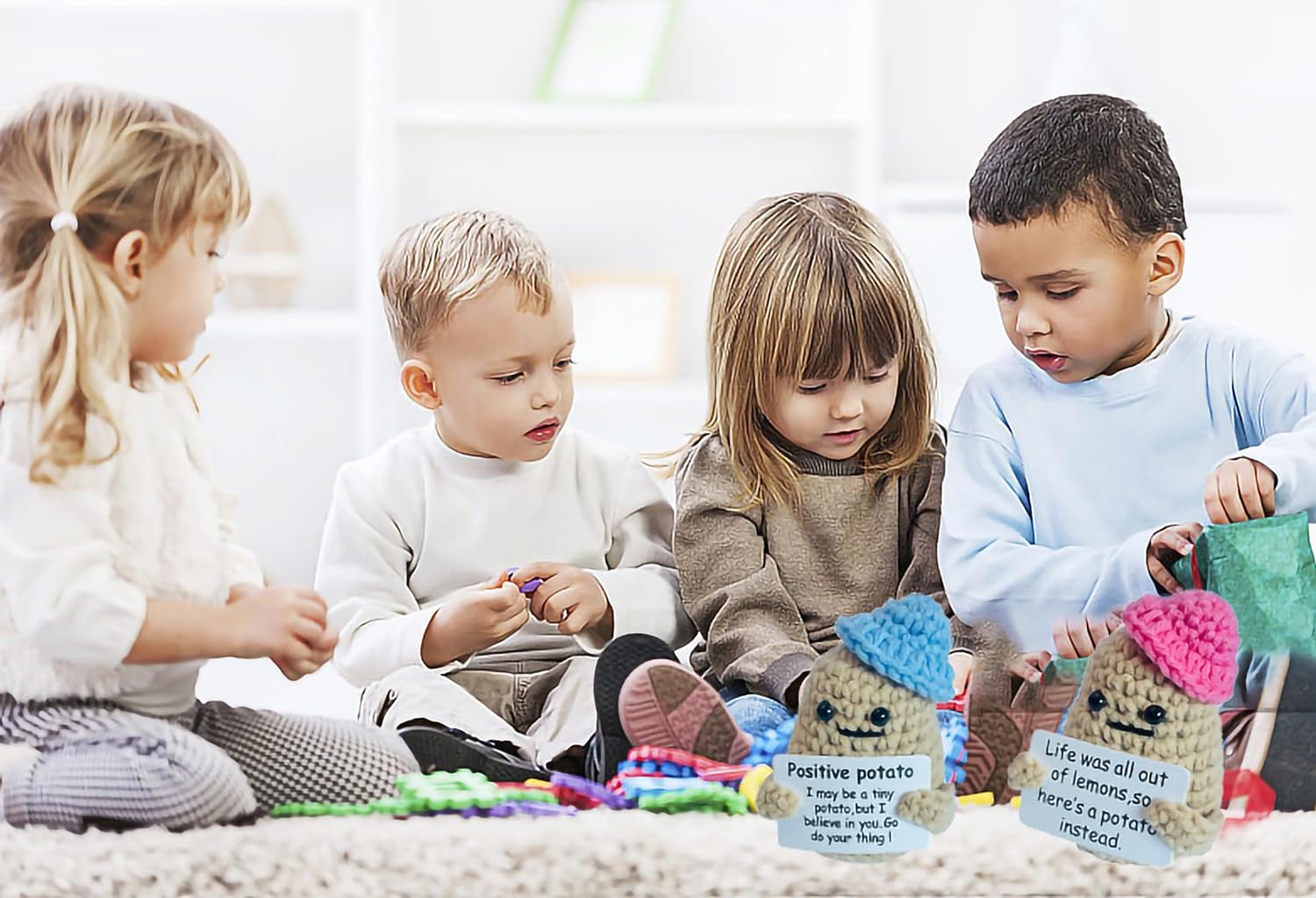 - 【Happy Everyday】Our funny positive potato knitted doll is very cute, and the words in the card are inspirational. You will happier if you see the doll when you are happy, while it will make you happy when you're upset. The positive potato doll will accompany forever.