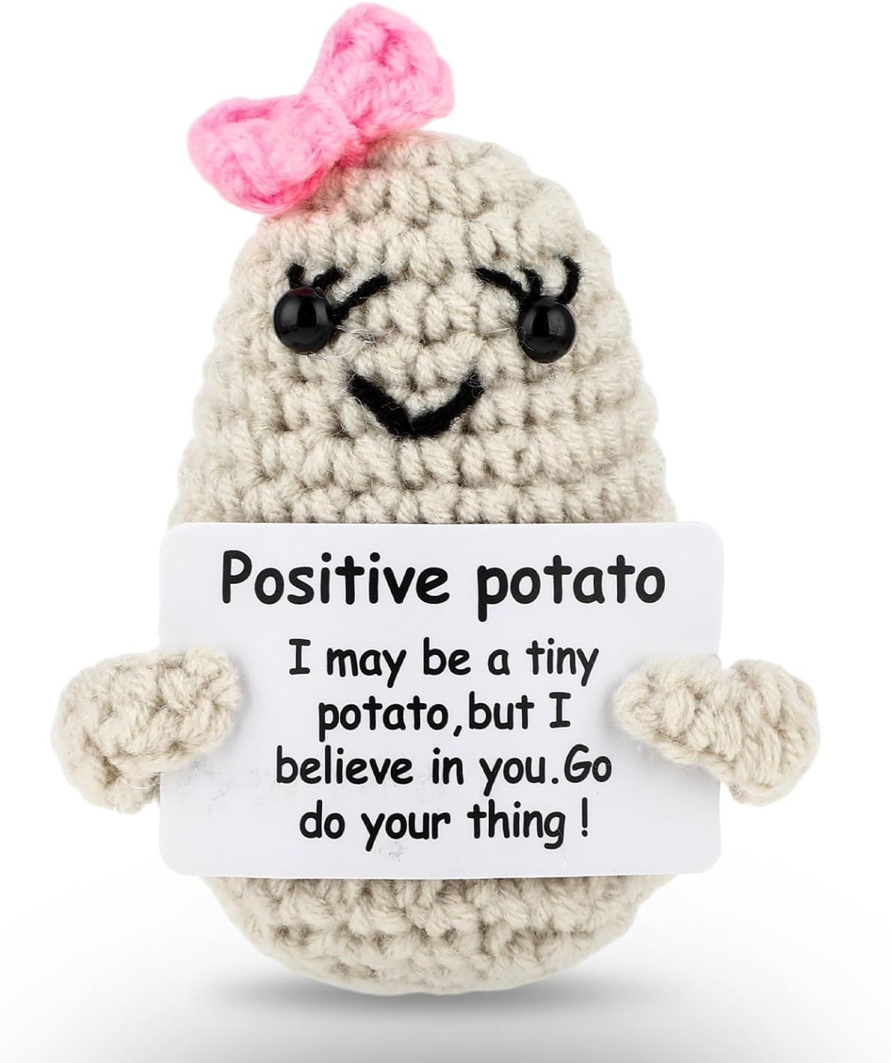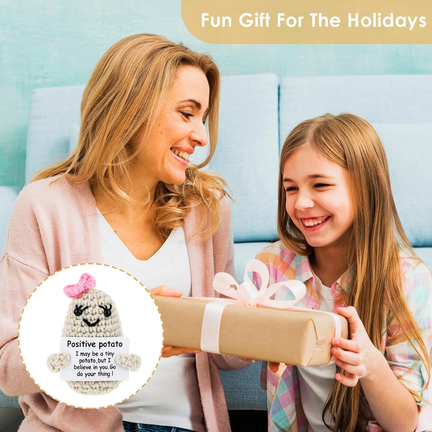 - Funny Positive Potato: You will receive 1 Knitted Positive Potato with an encouraging message card that will put a smile on the person you care about. It's so cute and surprising to your friends, family and children.