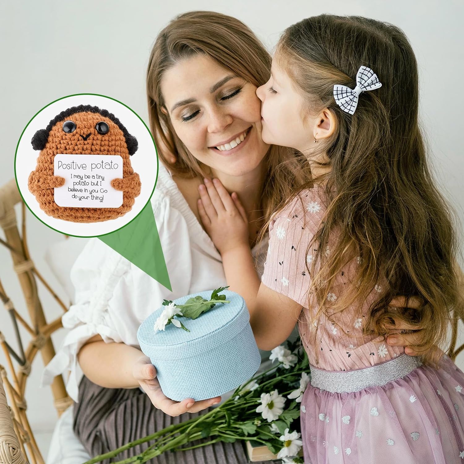 - Funny Positive Potato: You will receive 1 Knitted Positive Potato with an encouraging message card that will put a smile on the person you care about. It's so cute and surprising to your friends, family and children.