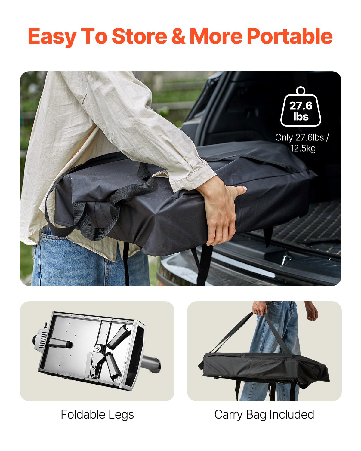 At only 28.9 lbs, this lightweight oven is perfect for backyards, campsites, tailgates, or beach cookouts. The foldable legs ensure compact storage, and it comes complete with a wood pellet shovel and carrying bag for easy transport and setup wherever your culinary adventures take you.