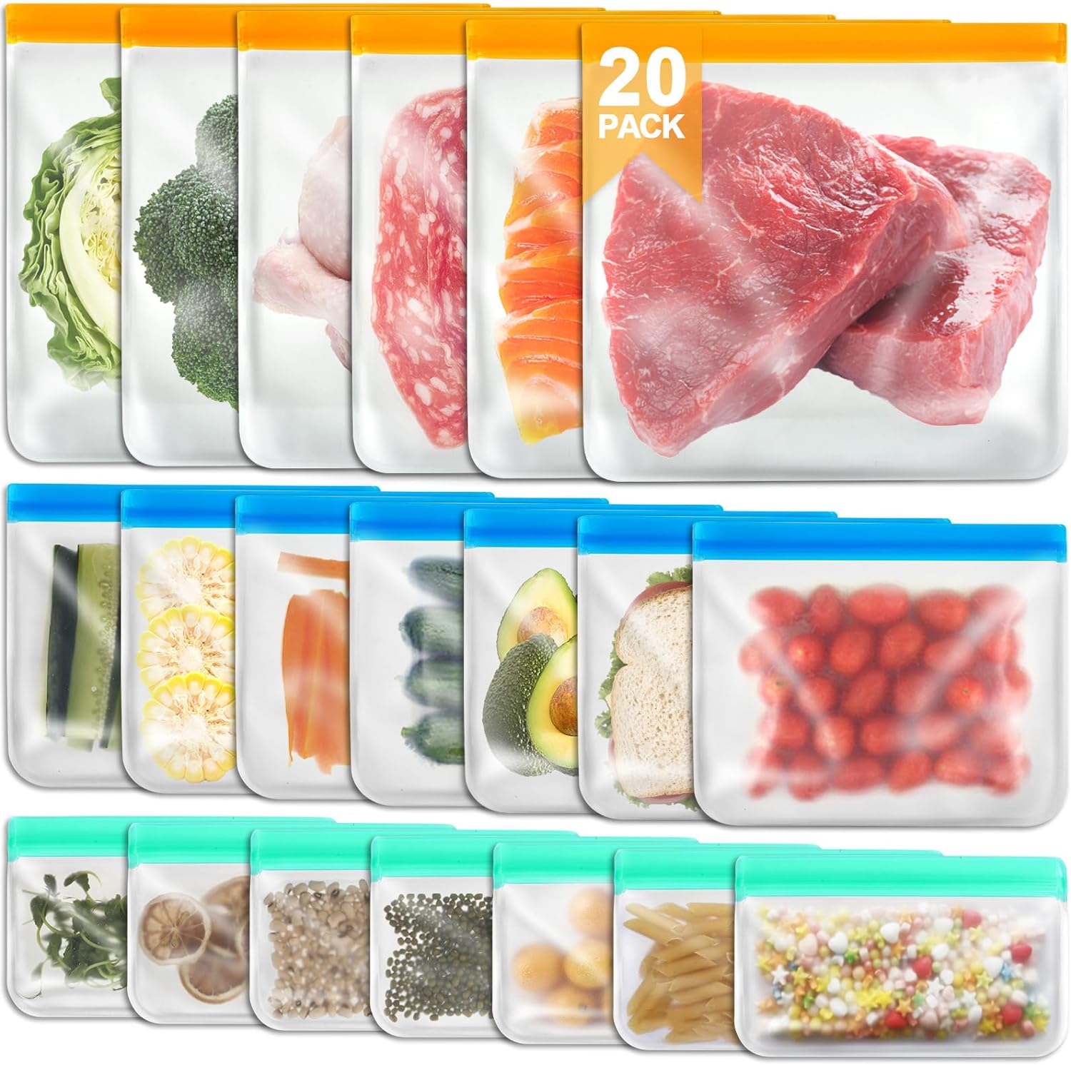 ♻【REUSABLE & DURABLE】Silicone freezer bags are reusable and lightweight, they can be reused for hundreds of times, one extra thick reusable silicone storage bag can save more than 350+ disposable plastic baggies, which not only will change the way you store, cook and even eat but also can save your money and save the planet. At the same time, the reusable bag is also a more economical option for your household.