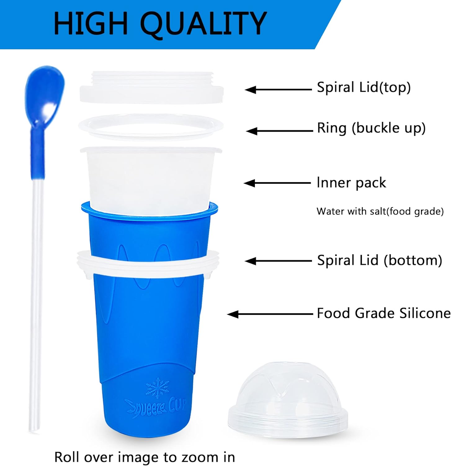 Food grade material: This slushie maker magic cup body uses food-grade silicone, soft and non-deformable; EVA; PP.